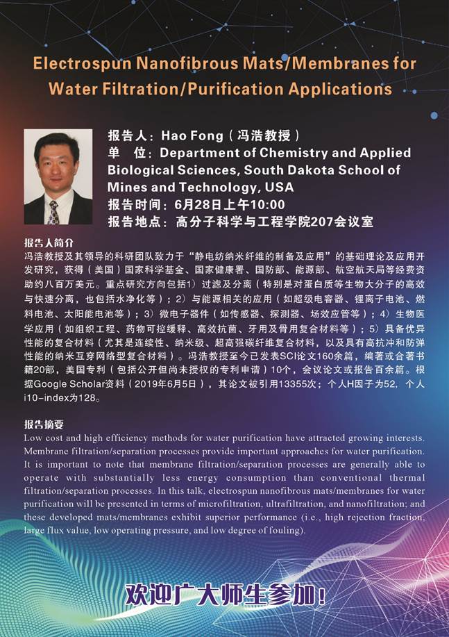 Speaker: Prof. Fong Hao, Department of Chemistry and Applied Biological Sciences, South Dakota School of Mines and Technology, USA