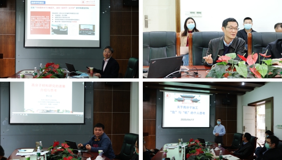 校发展规划处处长李忠明教授向大家介绍学校贯彻落实“文优、理进、工改、医强”的学科建设理念、深入推进学科内涵发展建设、第五轮学科评估以及双一流验收等情况,并对8bo8足球比分 学科发展建设提出了建议。党委书记牟德富从国内社会评价、综合评估、人才、科研等方面对学校高分子学科现状进行了分析介绍。科研副院长杨伟介绍了8bo8足球比分 近五年科研数据、8bo8足球比分 在全校科研排名及国家科研相关新政等内容。青年教师代表李乙文、王宇分别做了题为“高分子材料研究的进展介绍与思考”和“关于高分子加工‘危’与‘机’的个人思考”的报告,介绍了国内外高分子材料方向最新工作进展、分析了当前形势,并对8bo8足球比分 发展建设给出相关建议。