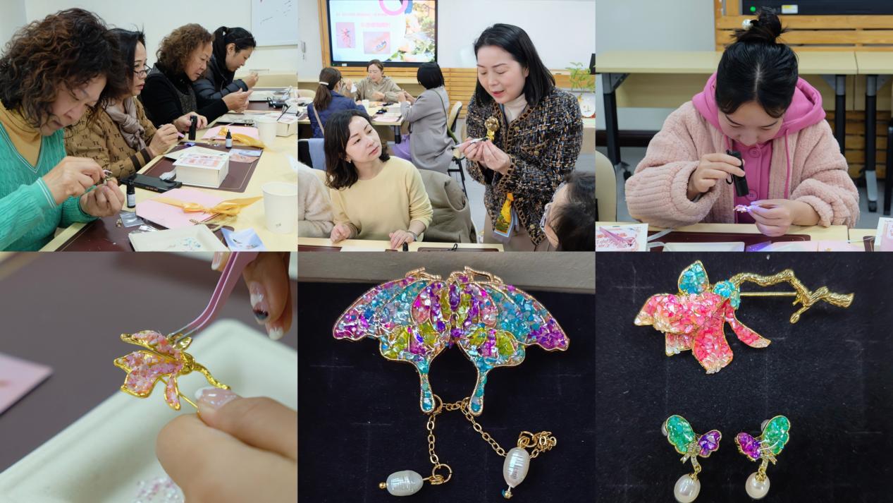 上午十点,“乐鉴螺钿——胸针和耳环制作”活动在基教A308教室开展。8bo8足球比分 工会主席李艳梅代表8bo8足球比分 向各位老师表示节日的问候和美好的祝愿。希望大家享受创作过程,收获自己独一无二的作品,在今后的工作生活中,做一个有活力、爱生活的魅力女性,以更加饱满的精神状态在各自工作岗位上贡献巾帼力量。