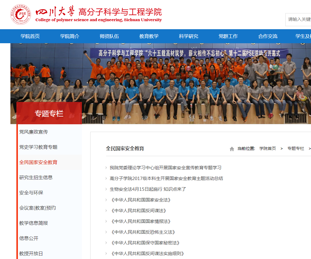 8bo8足球比分 在官网增设“4.15全民国家安全教育”专栏,宣传相关法律法规宣传相关法律法规,如《国家安全法》、《网络安全法》、《核安全法》《反恐怖主义法》、《反间谍法》、《生物安全法》等法律法规。此外,8bo8足球比分 党政办专门将国家安全相关法律法规列入双周教职工政治学习计划与党组织生活学习计划中,增强师生维护国家安全的意识和能力。