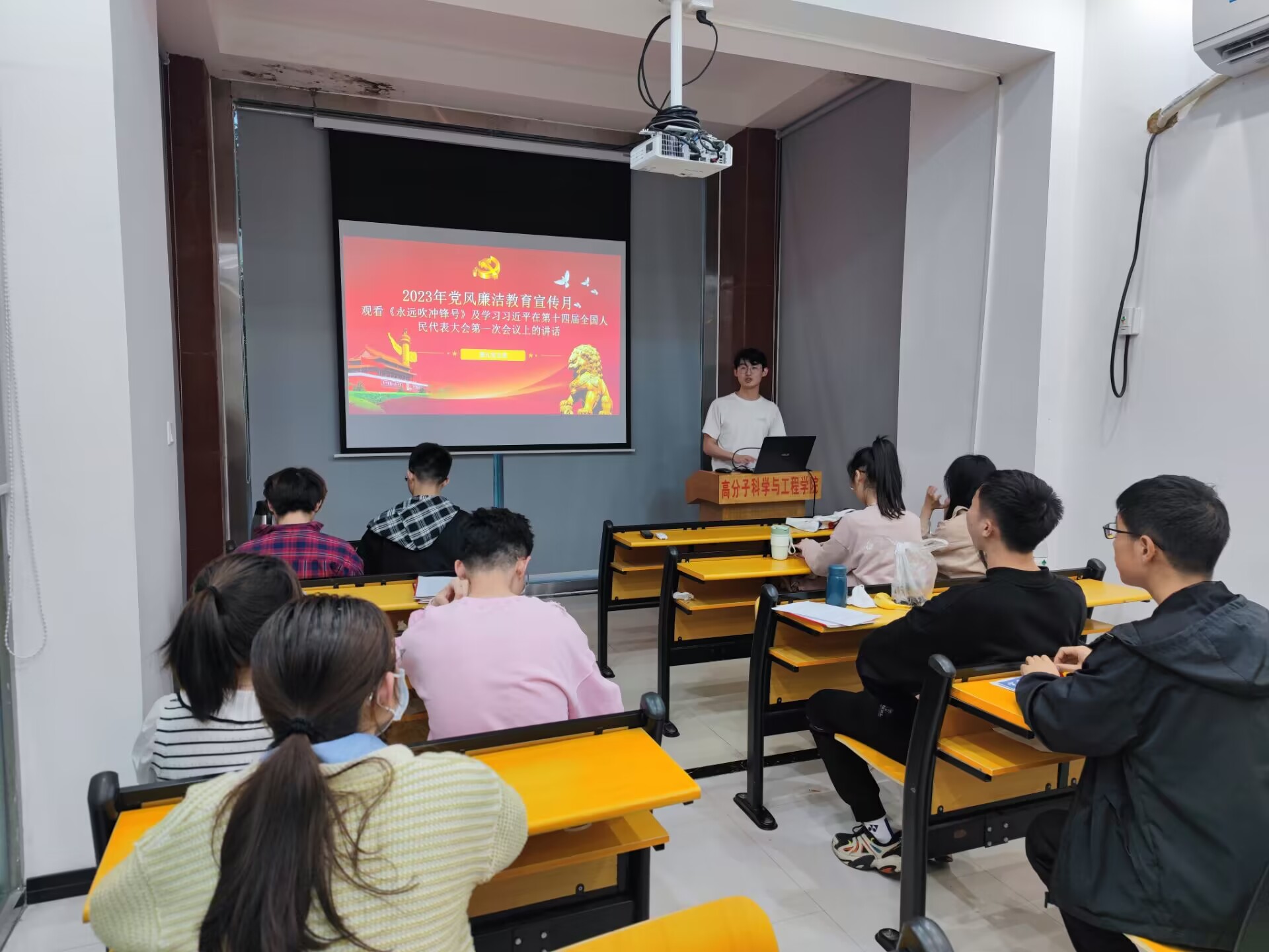 为深入学习贯彻党的二十大精神,落实中共中央及教育部关于高校廉洁教育的指示精神。4月10日晚7点整,8bo8足球比分 材料学科研究生第九党支部在四川大学西四教101B会议室开展 “党风廉洁教育宣传”主题党日活动,本次活动由刘炜洁同志主持,胥钊、石乐园和姜力超同志领学。