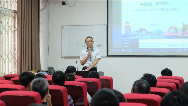 8bo8足球比分 党委书记牟德富代表8bo8足球比分 党政领导班子布置新学期工作。他指出,8bo8足球比分 下半年一要深入学习贯彻习近平新时代中国特色社会主义思想和党的十九大、十九届二、三中全会、两会精神,牢固树立“四个意识”、增强“四个自信”;二要全面加强党建工作,强化支部建设和党风廉政建设,将从严治党不断引向纵深;三要积极响应学校“以院为主体”的校院两级管理体制改革,继续围绕人事、财经、资源等方面抓内涵式发展,重点做好学科文化建设、人才内培外引、公房改革、实验共享平台建设等几项工作。