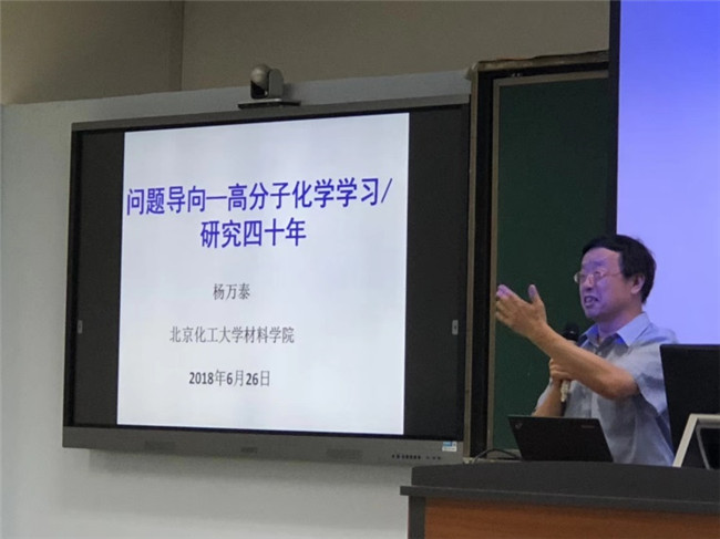 2018年6月26日,应8bo8足球比分live 傅强院长的邀请,北京化工大学杨万泰院士到8bo8足球比分live ,为8bo8足球比分live 师生作了题为“问题导向—高分子化学学习/研究四十年”的学术报告,本次报告由杨伟副院长主持。