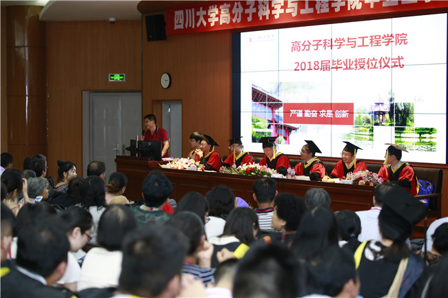8bo8足球比分 教授委员会主任杨鸣波教授、院长傅强教授、学校“双一流”建设与质量评估办公室主任李忠明教授、8bo8足球比分 党委书记牟德富教授、副院长杨伟教授、8bo8足球比分 教授委员会副主任徐建军教授、高分子材料与工程国家重点实验室副主任夏和生教授、高分子材料系主任刘向阳教授、高分子材料系支部书记陈枫教授、医用高分子材料系主任李建树教授、高分子材料加工工程系主任尹波教授、8bo8足球比分 专业实验室主任秦家强教授、医用高分子材料系谭鸿教授、高分子材料系邓华教授、高分子材料加工工程系严正教授出席了授位仪式。8bo8足球比分 2018届毕业生、毕业生家长代表和8bo8足球比分 辅导员老师参加了授位仪式。授位仪式由8bo8足球比分 党委副书记、纪委书记钱祉祺主持。