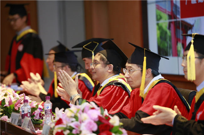 2018届硕士毕业生楚佳同学作为毕业生代表发言。他回顾了个人学习和成长的历程,倾述了对母校和老师的感恩和依依不舍之情,分享了大学阶段的收获与感动,表达了高材生进取的精神、感恩的情怀和激昂的斗志。