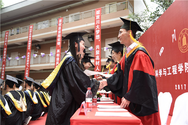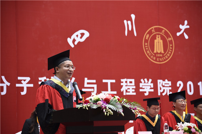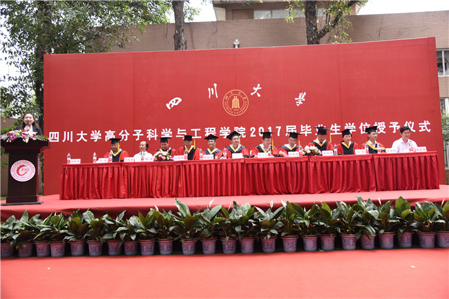 6月20日上午10点30分,8bo8足球比分 2017届本科生毕业典礼暨学位授予仪式在8bo8足球比分 附楼后院隆重举行。四川大学前常务副校长、高分子材料工程国家重点实验室主任、高分子研究所所长李光宪教授、8bo8足球比分 党委书记牟德富教授、8bo8足球比分 院长傅强教授、8bo8足球比分 教授委员会主任杨鸣波教授、四川大学人事处处长、8bo8足球比分 赵长生教授、钱祉褀副院长、材料系党支部书记陈枫教授、高分子材料加工系主任杨其教授、高分子科学系主任冉蓉教授、化纤研究所所长徐建军教授、生物材料及人工器官系副系主任李建树教授以及8bo8足球比分 2017届300余名本科毕业生,部分家长代表参加了典礼。典礼由8bo8足球比分 李艳梅副书记主持。