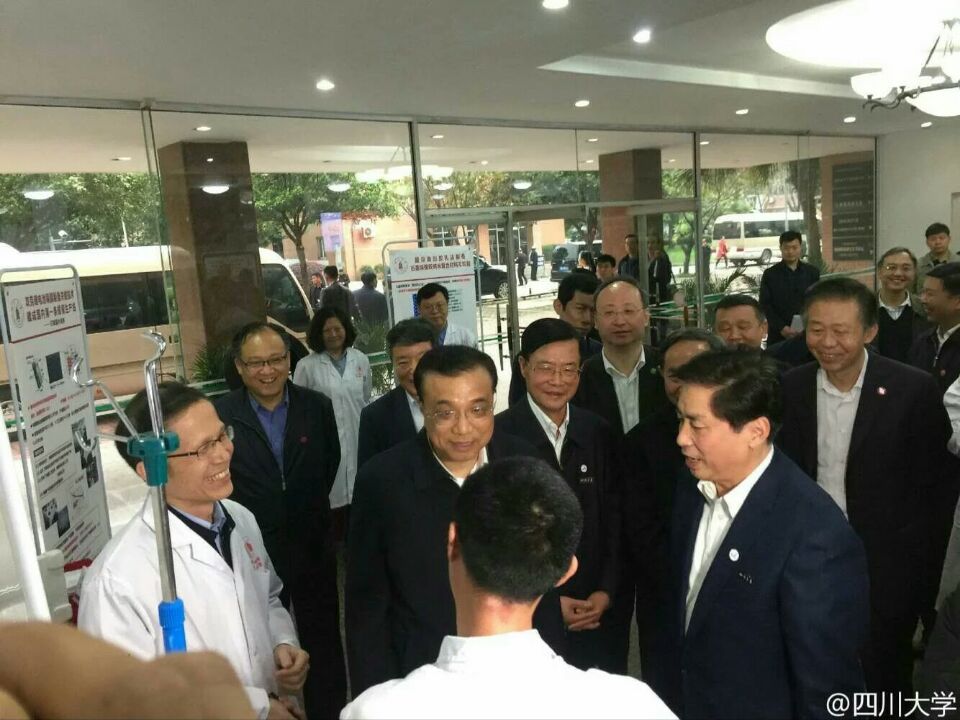 2016年4月25日,下午五点三十一分,在万众期待的目光中,中国国务院总理李克强来到川大,在四川大学党委书记杨泉明教授、校长谢和平院士的陪同下对我校进行考察,而考察第一站,是四川大学高分子材料工程国家重点实验室。