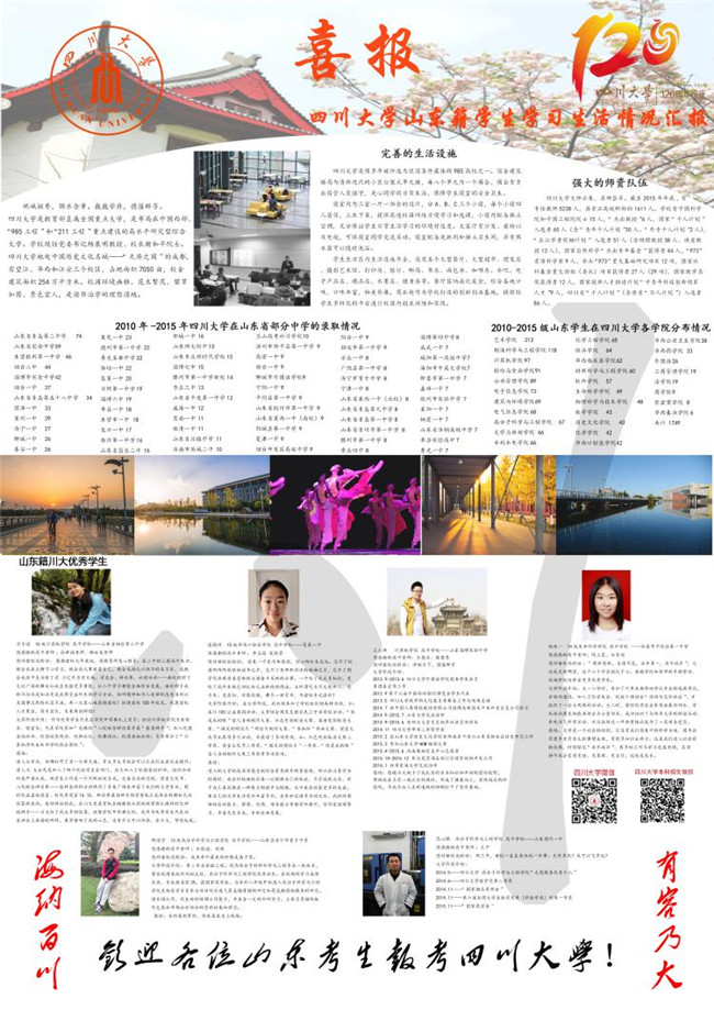 为庆祝四川大学120周年华诞,扩大我校在山东省的招生质量和影响力,进一步凝聚山东校友力量,扩大招生宣传效果,8bo8足球比分 招生宣传工作小组联合8bo8足球比分 校友工作组积极筹划,通过设计《喜报—四川大学山东籍学生学习生活情况汇报》,制定《2016年山东招生宣传工作策划》和《四川大学山东省招生宣传手册》,于4月正式开启了2016年度在在山东省招生宣传和访问校友的行程。