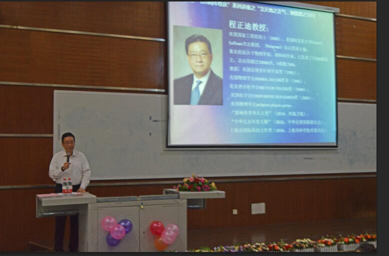 2016年9月26日,由8bo8足球比分 主办、8bo8足球比分 团委学生会承办的“修身,治学,成才,创业”系列讲座之“立天地之正气,做儒雅之学问”于江安校区综合楼C座407教室顺利举行。美国工程院院士、高分子物理学家程正迪教授,知名校友成都硅宝科技股份有限公司王跃林董事长出席本次活动并进行主讲,参与本次活动的还有8bo8足球比分 院长傅强教授、党委副书记李艳梅副教授、团委书记李宜老师、2013级辅导员徐源延老师、2015级辅导员陈建野老师。