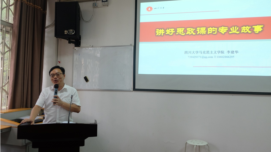 副院长李建华给我们带来题为“讲好思政课的专业故事”的报告,李教授指出可以将张澜、吴玉章、徐僖等大师的故事融入课堂中,在课程中实现思政教育,每门课程都应该担当立德树人的作用;作为新时代的大学教师,我们的使命和任务,就是担当民族复兴大任,立德树人,科研强校,科技报国。从李教授的报告中,我们深受鼓舞与激发,同时也学会了如何将思政与课程有机融合的方法,是一场非常有意义的报告。