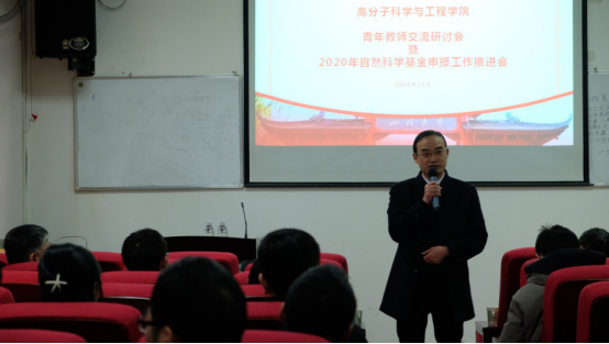 2019年11月27日上午,“8bo8足球比分-8bo8足球比分live 青年教师学术论坛暨2020年自然科学基金申报工作推动会”在8bo8足球比分live 207会议室举行。8bo8足球比分 党委书记牟德富教授、院长傅强教授、教授委员会主任杨鸣波教授、副院长杨伟教授、高分子材料系李乙文研究员和医用高分子材料及人工器官系魏强研究员应邀作为此次论坛指导老师出席,论坛由副院长杨伟教授主持,全院青年教师悉数到场。