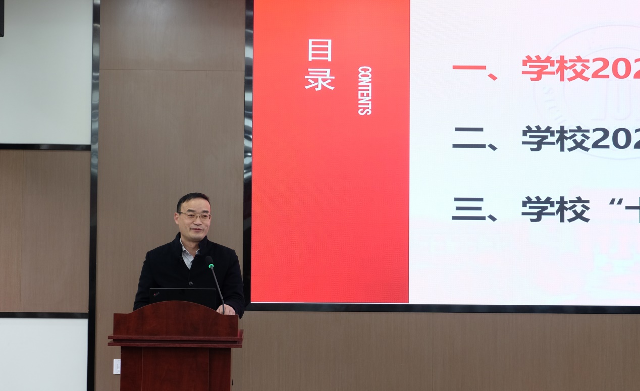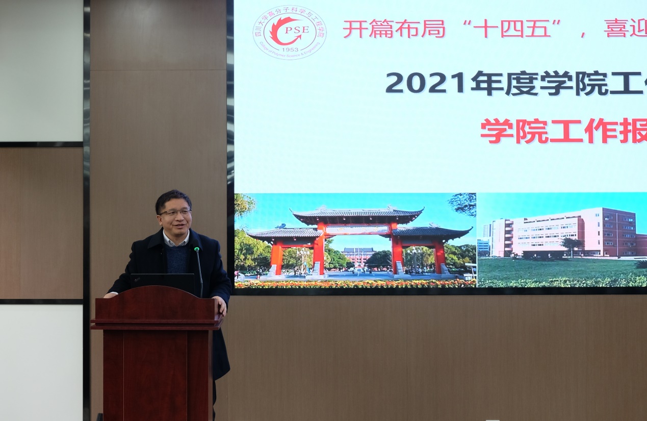 会上,党委书记牟德富详细传达了学校2020年工作总结、2021年重点工作以及学校“十四五”规划说明。他强调,2020年度8bo8足球比分 各方面工作都取得了一定的成绩,呈现很好的势头,离不开全院教职工的付出与贡献,但是也存在着问题和短板。我们要把握学校“十四五”规划和2035先导计划等机会,探索8bo8足球比分 下一步发展思路,紧抓一流内涵和核心指标,凝心聚力,奋勇向前,开拓创新,续写高分子学科发展新篇章。