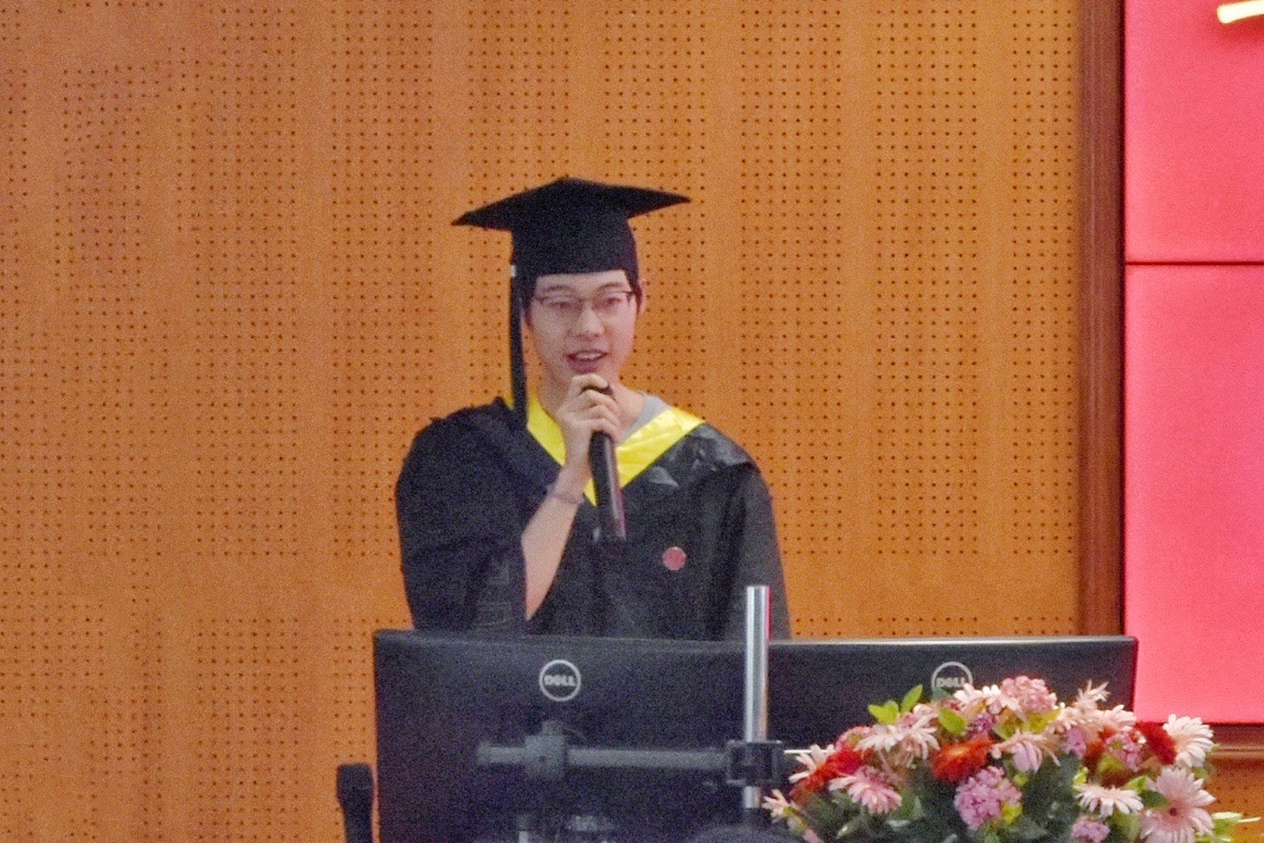 四川省优秀毕业生、2022届毕业生代表陈鹏同学代表全体毕业生发言。他细数大学生活中的点点滴滴,回顾了四年来的成长与收获,表达了对8bo8足球比分 、同窗的感激之情。他表示将在新的征途,志存高远,砥砺前行,不负川大、8bo8足球比分 的培养。
