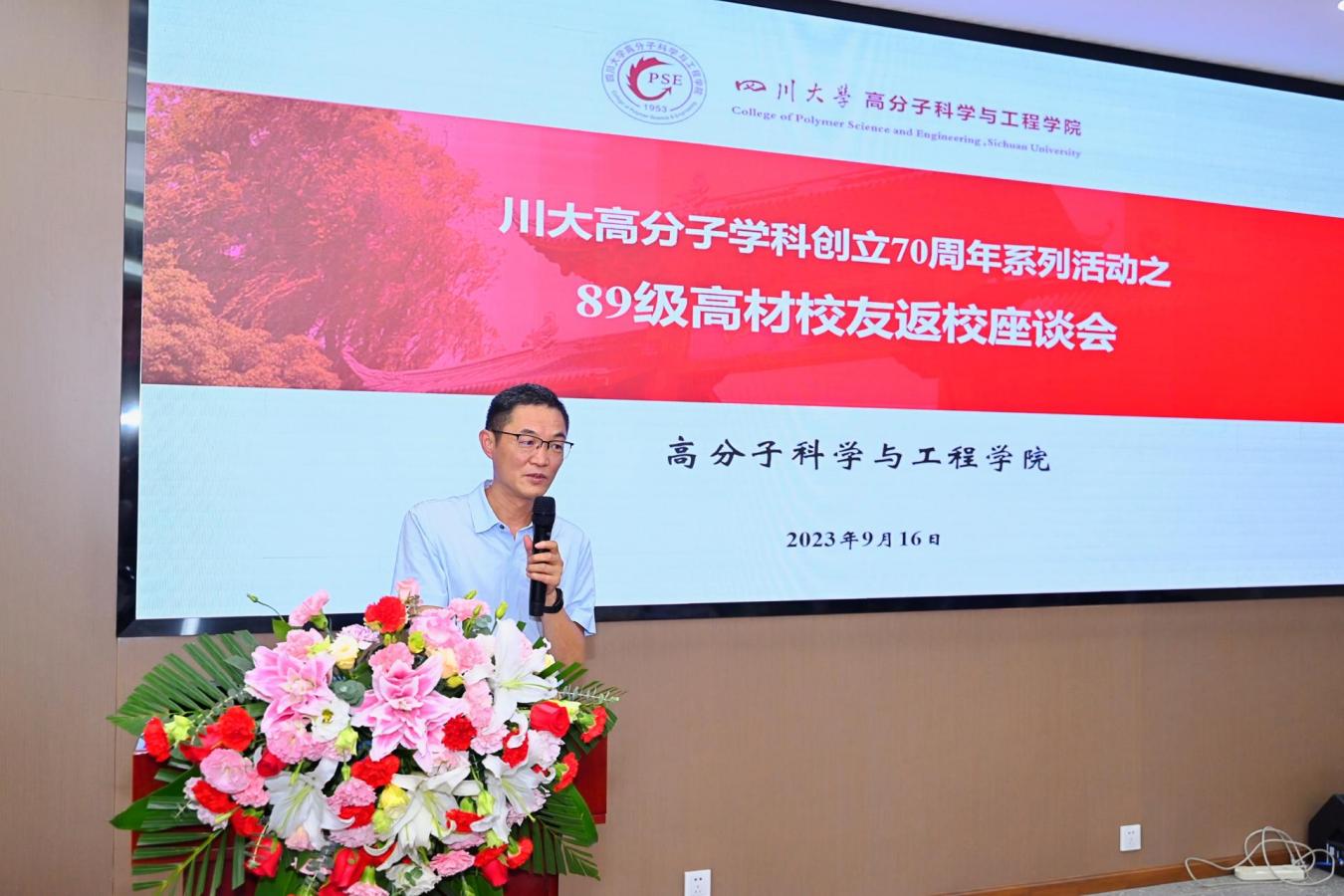 9月16日下午,四川大学高分子学科创立70周年系列活动之89级高材校友返校座谈会举行。副校长褚良银,学校对外联络办公室主任、校友总会秘书长陈森,8bo8足球比分 党委书记牟德富、院长赵长生,8bo8足球比分 教师代表及来自全国各地的高材系89级校友参加活动。