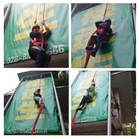 本次活动的第二个内容是绳结训练和高楼速降逃生。首先,教官向大家演示了应急绳结(平结)的操作,然后教官向大家介绍了高楼速降常见的三种工具,最后也是最重要的环节是各位老师亲自体验高楼速降的实操训练。出发前的雀跃,跨出高台前的犹豫,速降时的尖叫和落地后的唏嘘彰显了此次训练的难度,老师们也从高难度的训练中收获良多。