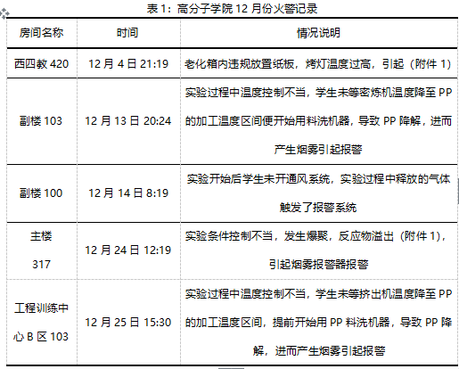 表1:8bo8足球比分 12月份火警记录