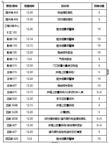 (1)依据《8bo8足球比分 安全与环保工作管理规定》,12月份实验室扣分情况如下: