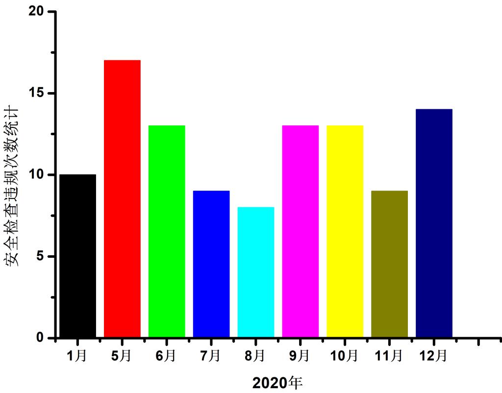 (2)依据《8bo8足球比分 安全与环保工作管理规定》,2020年度1-12月份实验室扣分详情见附件2。2020年,累计有47间实验室违反安保管理规定,其中3间实验室扣分≥40分(最高扣分45分),4间实验室扣分≥30分,7间实验室扣分≥20分。