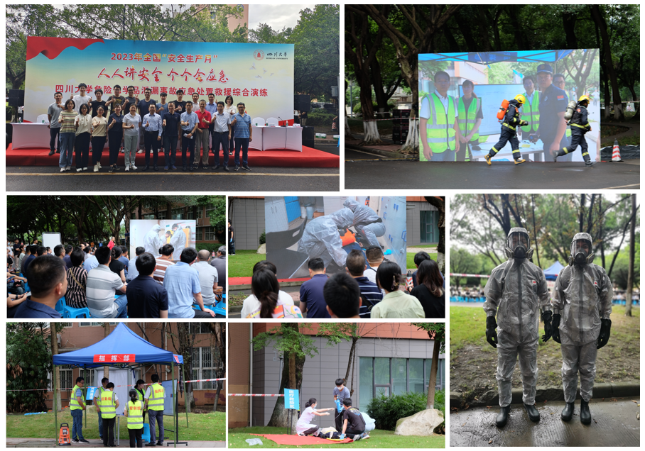 (3)6月29日,由四川大学实验室及设备管理处主办,8bo8足球比分 与莱博斯安全科技发展有限公司承办的实验室危险化学品泄漏事故应急处置救援综合演练在8bo8足球比分 实验楼举行。四川大学副校长褚良银、清华大学化工系高级工程师杜奕出席活动,学校党政办、学工部、保卫部(处)、教务处、研究生院等部门主要负责人,各8bo8足球比分 (医院、系、中心、所)、国家级(省级)科研实验平台实验室安全分管领导、安全主管,8bo8足球比分 150余名师生及成都市消防救援支队锦江区大队莲桂路消防救援站消防官兵参加了演练(附件2)。