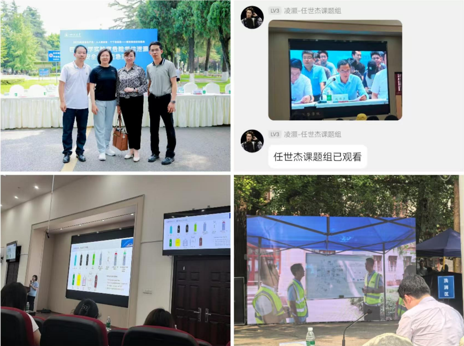 (3)6月27日下午,李艳梅副院长、安全秘书张明华、安全员谢兴益等100余名师生通过线上线下结合的方式一起观摩学习四川大学2025年实验室气体泄漏应急演练与培训(附件3)。
