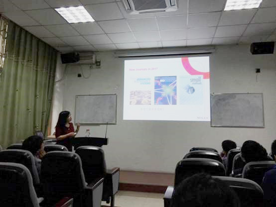 在今天的报告中,翁博士重点介绍了WILEY出版集团旗下与材料学科密切相关的Advanced Materials、Advanced Functional Materials、Small等国际知名期刊及一些最近新创刊的一些子刊,尤其对于投稿过程中需要注意的细节包括如何撰写投稿信、组织论文的摘要和结论部分、如何适当引用参考文献、论文的修改与提升等,做了重点阐释。同时,也对于WILEY出版集团旗下期刊的审稿工作进行了详细的解读,例如如何对稿件进行初审,如何寻找合适的审稿人,以及在收到审稿人的意见之后如何对稿件做出决定等。还介绍了如何对文章做查重鉴别,以防因此类问题影响后续工作的发表。会后参会人员积极提问,问题多涉及杂志投稿周期,如何应对审稿人提出的审稿意见等,现场气氛热烈,参会人员都很有收获。