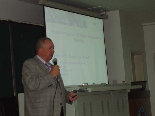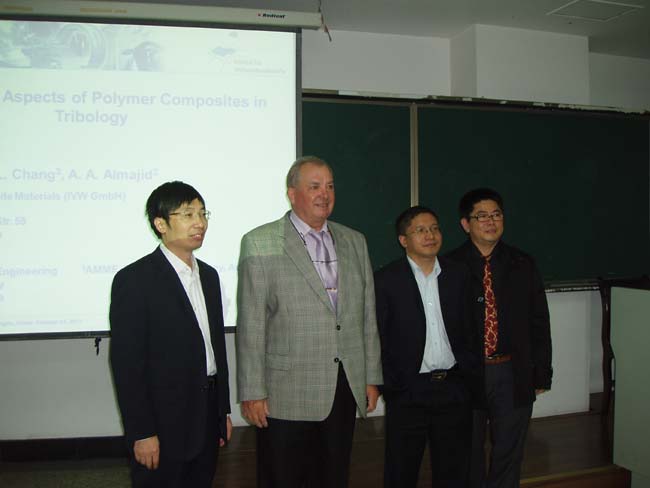 10月20日上午,德国凯泽斯劳滕大学(University of Kaiserslautern)Klaus Friedrich教授应8bo8足球比分 邀请访问我校,并在研究生院3-231作了学术报告,傅强院长主持了会议,8bo8足球比分live 师生200余人参加了报告会。Klaus Friedrich教授的报告题目为“复合材料在摩擦学中的应用”,Klaus Friedrich教授介绍了各种复合材料在摩擦学中的摩擦性能特点、结构设计及在各种工业产品中的应用。