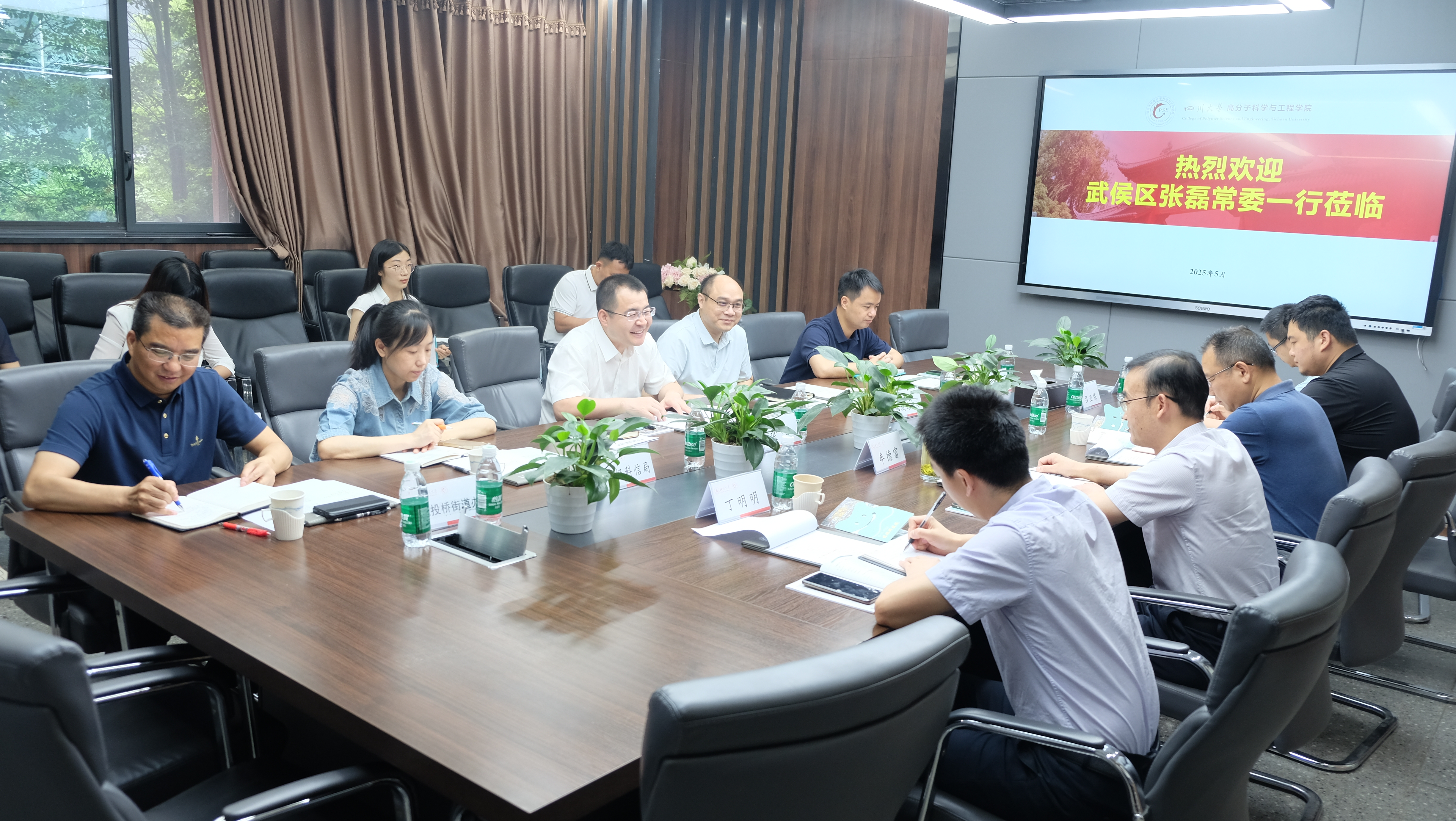 5月16日上午,武侯区区委常委、副区长张磊一行到8bo8足球比分live 开展政产学研合作对接交流工作,武侯区城运中心、区经科信局、悦湖新材料科技中心、机投桥街道办有关领导、8bo8足球比分 党委书记牟德富及各系、发展科相关同志参加了交流会。会议由牟德富主持。