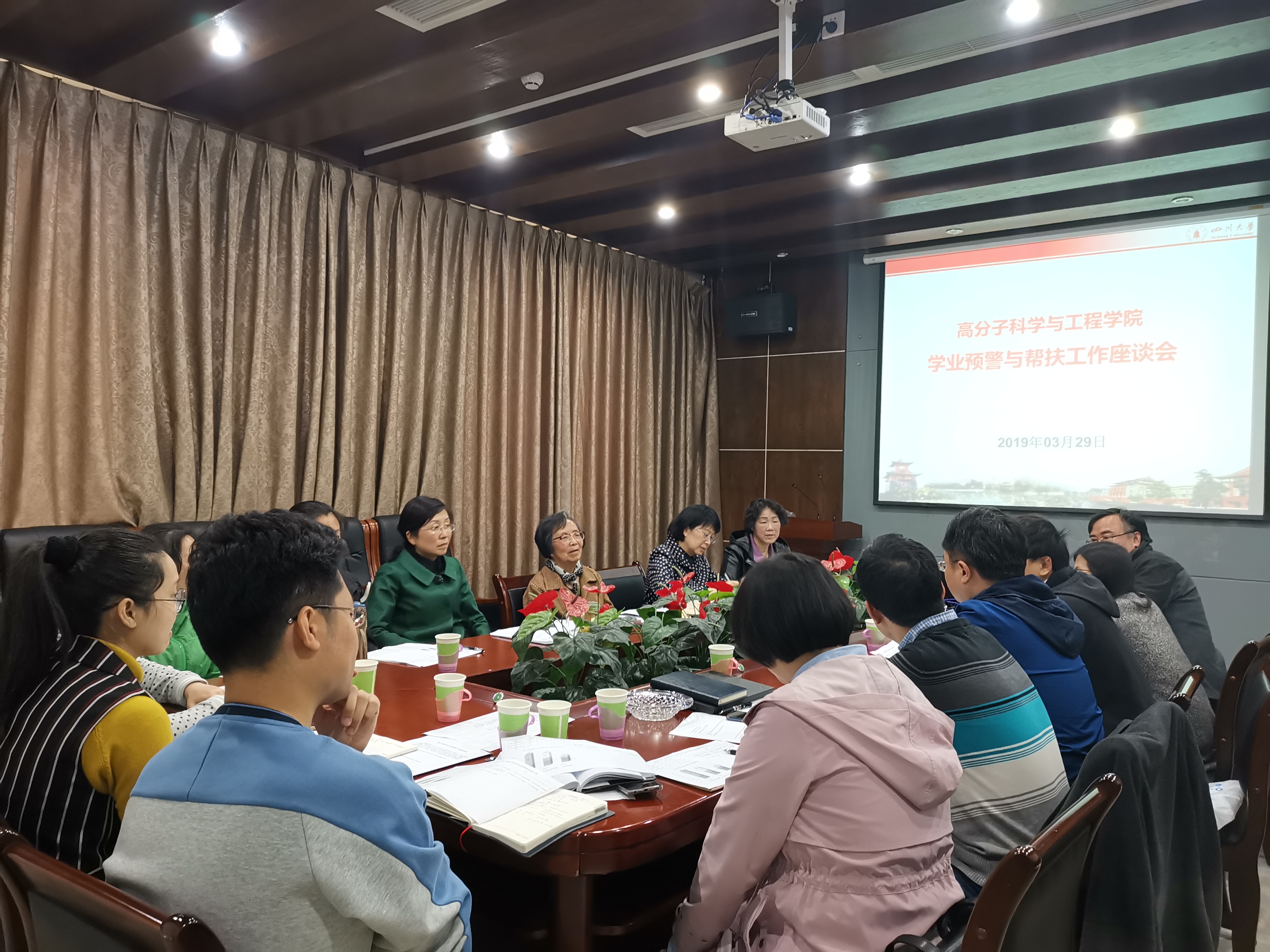 根据《四川大学本科学生学籍管理规定(修订)》、《四川大学本科生学业预警及帮扶机制实施办法(修订)》的相关规定,教8bo8足球比分 长冉蓉教授部署对本8bo8足球比分 预警学生的帮扶工作,组成了以教学副院长、学生副书记、各年级辅导员、学业导师(面向大学二年级及以上)、班主任(面向大学一年级)、教学管理人员为主力的本科生学业预警帮扶小组,要求帮扶教师与预警学生进行深入交流,认真分析学生学业落后的原因并与其制定学业提升计划。座谈会上,与会老师交流帮扶心得,现场讨论气氛热烈。2018-2019秋季学期8bo8足球比分live 共有32位同学受到学业预警,在经过学生与老师的共同努力下,2018-2019春季学期共19位同学受到学业预警,其中1人正在办理退学,1人已休学,大部分同学学业进步明显。冉蓉教授对上学期的学业预警帮扶工作表示肯定,希望大家在新的学期再接再厉,继续做好学业困难学生的帮扶工作。