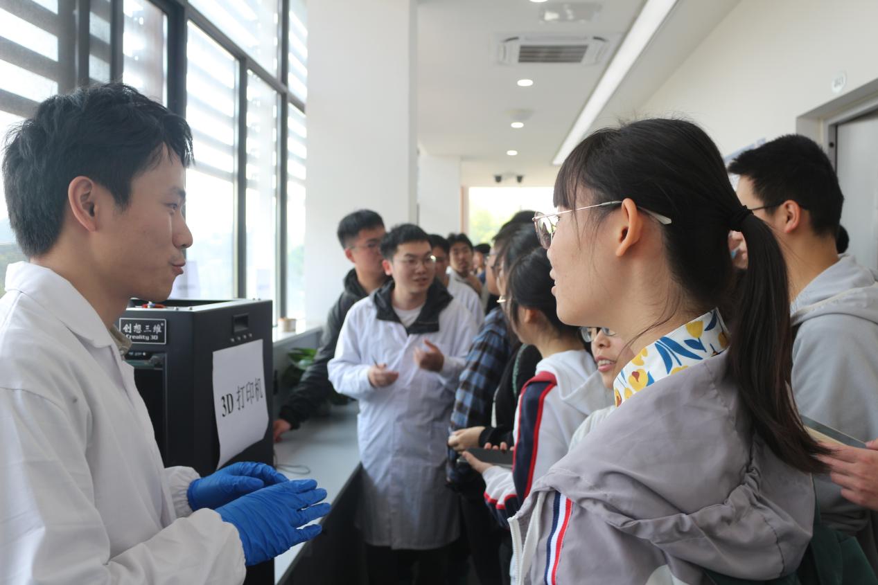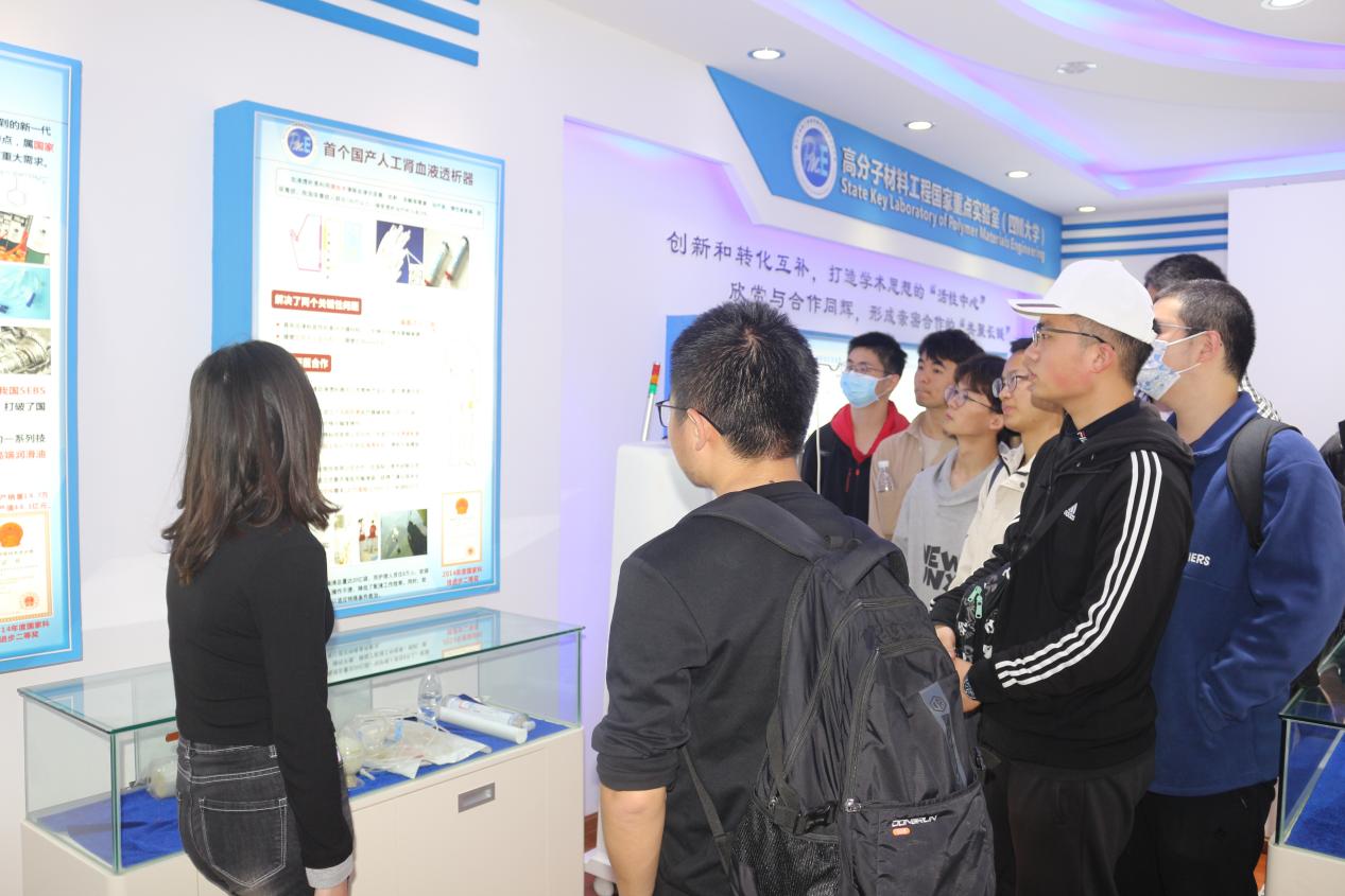 本次“OPEN DAY”实验室开放日活动上午以班级为单位,同学们集中参观了高分子材料工程国家重点实验室、高分子实验楼、第四教学楼、高分子材料工程训练中心、科教楼等楼宇的实验室。在带队老师和研究生会志愿者同学的带领下,同学们分四支队伍按照参观路线有序参观。参观过程中,各实验室主要负责教授和研究生学长学姐向同学们详细介绍了各实验室的研究方向、课题成果、先进的实验仪器设备的基本功能和操作技巧以及毕业生的就业情况,现场同学们对于展示的最新科研成果表示出极大的兴趣,并结合下一步拟学习的专业课程以及自身未来拟从事的科研方向进行提问,研究生学长学姐结合自身的学习经历和正在从事的科研方向给予耐心的解答。下午,同学们根据自身的专业研究兴趣分别选择实验室进行更深入的交流学习。