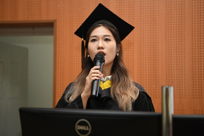 2023届毕业生代表胡伊凌同学代表全体毕业生发言。她回顾了大学四年的成长与收获,表达了对8bo8足球比分 、老师、同窗的感激之情。同时她呼吁同学们在今后的生活中不忘初心,砥砺前行,不负青春,不负韶华。