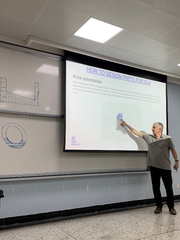 在第一堂课上,Cardon教授首先介绍了比利时根特大学,并通过视频和图片让同学们了解当地的自然景观和风土人情,Cardon教授语言幽默风趣,态度平易近人,同学们都听得专心致志、聚精会神。接下来,Cardon教授介绍了为期四天的课程的安排,课程围绕增材制造展开,从增材制造的发展背景和基本原则到不同的增材制造方法的具体过程和应用范围,深入浅出,泛而有度。最后,Cardon教授通过讲解塑料制品的成型的方法和要求引入了增材制造这一极具发展潜力的领域。