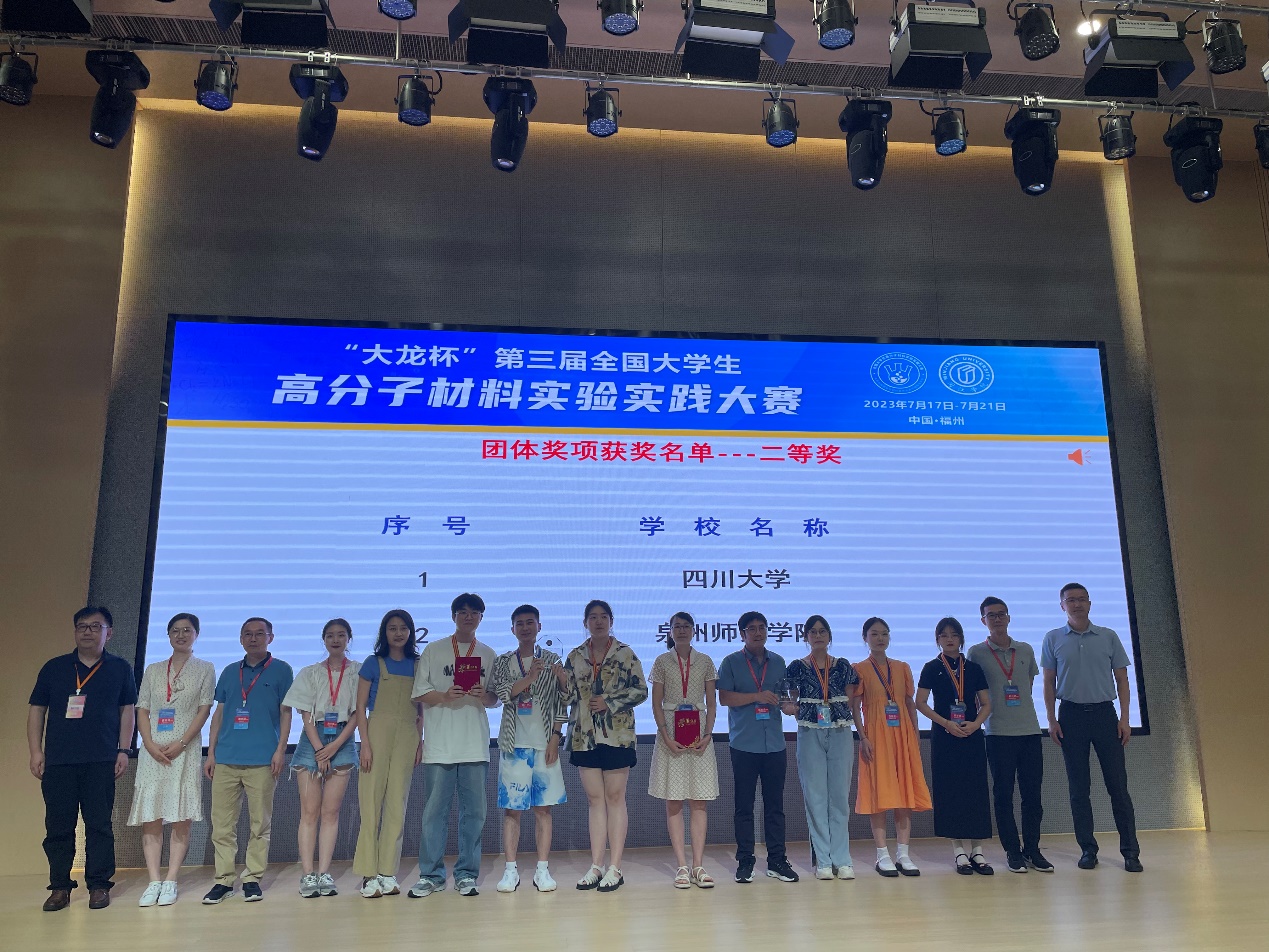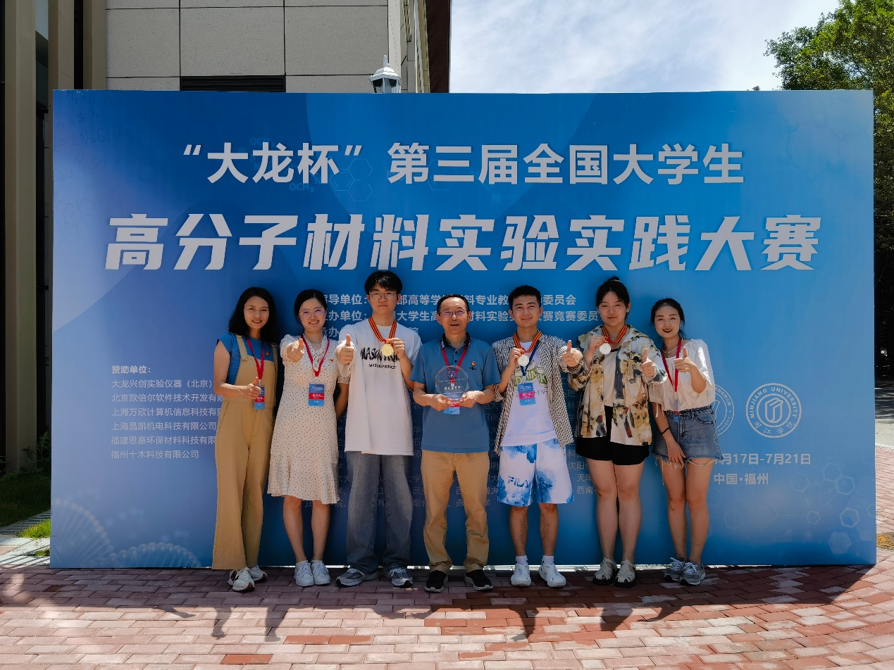 7月17-21日,由教育部高等学校材料专业教学指导委员会指导、全国大学生高分子材料实验实践大赛竞赛委员会主办、闽江8bo8足球比分 承办的“大龙杯”第三届全国大学生高分子材料实验实践大赛(以下简称“双实”大赛)于有福之州·福建省福州市顺利举行。本届大赛吸引了来自四川大学、东华大学、华南理工大学、大连理工大学、天津大学、西安交通大学等59所高校共400余名师生参加。经过上下半赛区各高校学子的激烈竞争和裁判评委的严格评审,8bo8足球比分live 三名学子在决赛中脱颖而出,获得全国一等奖一项(最高奖项)、二等奖两项,团体总成绩在59所高校参赛队伍中排名第二位,获团体二等奖的优异成绩。