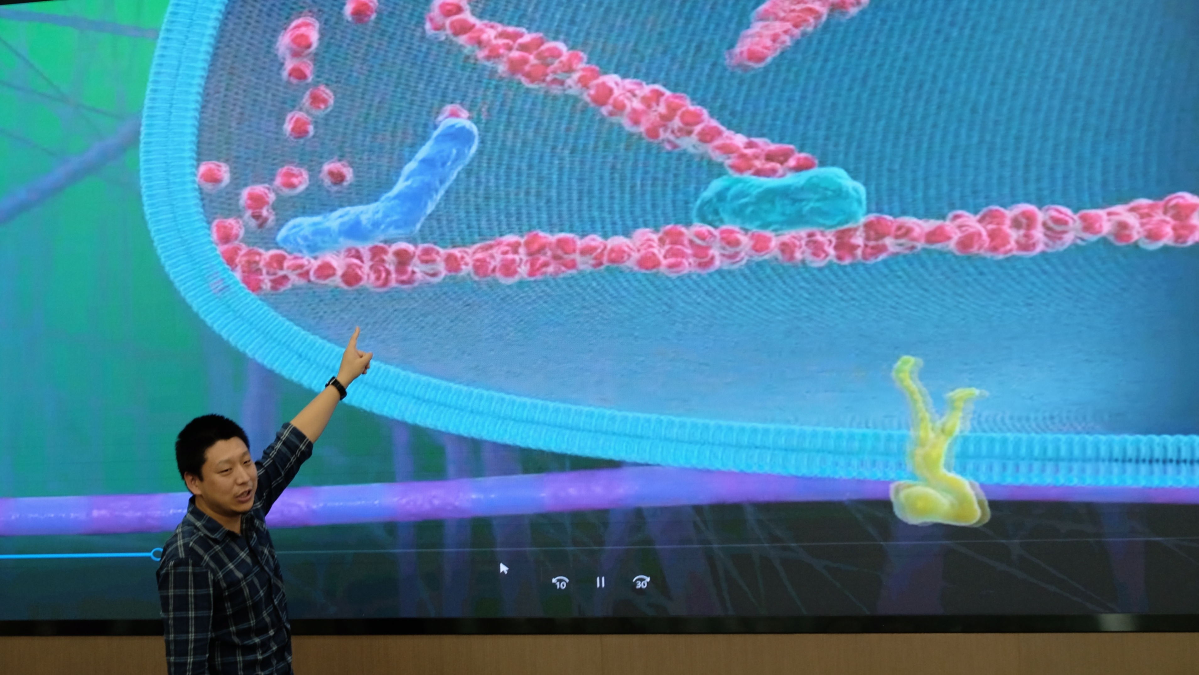 8bo8足球比分 魏强研究员首先向同学们解释了什么是高分子,结合生动的视频资料向同学们详细阐述了细胞与微环境相互作用的基础科学问题。魏老师让同学们上台来模拟肌球蛋白、组蛋白和骨架,直观有趣地展示了细胞内细胞骨架的聚合过程,激起了同学们对细胞力学和交叉学科研究的兴趣,拓宽了科学视野。