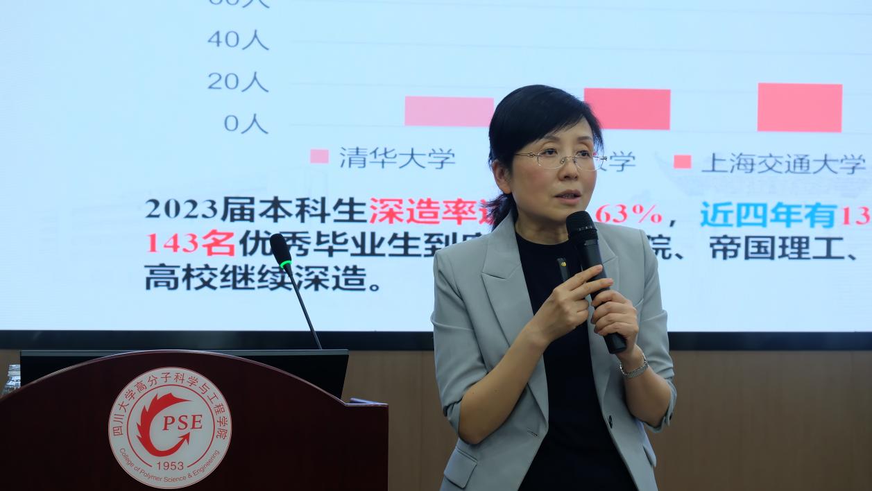 8bo8足球比分 副院长冉蓉介绍了8bo8足球比分 人才培养情况、深厚学术底蕴和在高分子学科领域展现出的卓越科研实力与丰硕教学成果,并表示欢迎同学们以后报考川大高分子。