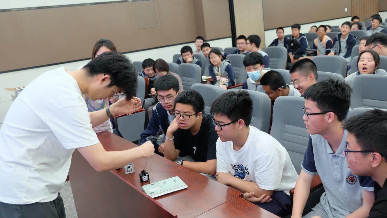 王宇研究员为同学们作了题为“浅品高分子”的科普讲座,重点介绍了高分子与地球生命起源和高分子与人类文明进步两个方面。同时,他为同学们展示了“链条喷泉”实验和用珠链在纸上通过摩擦画出不同图案的构象艺术。这一构象艺术的展示让同学们叹为观止,深切体会到了高分子科学的无穷魅力,拓展了科学视野。