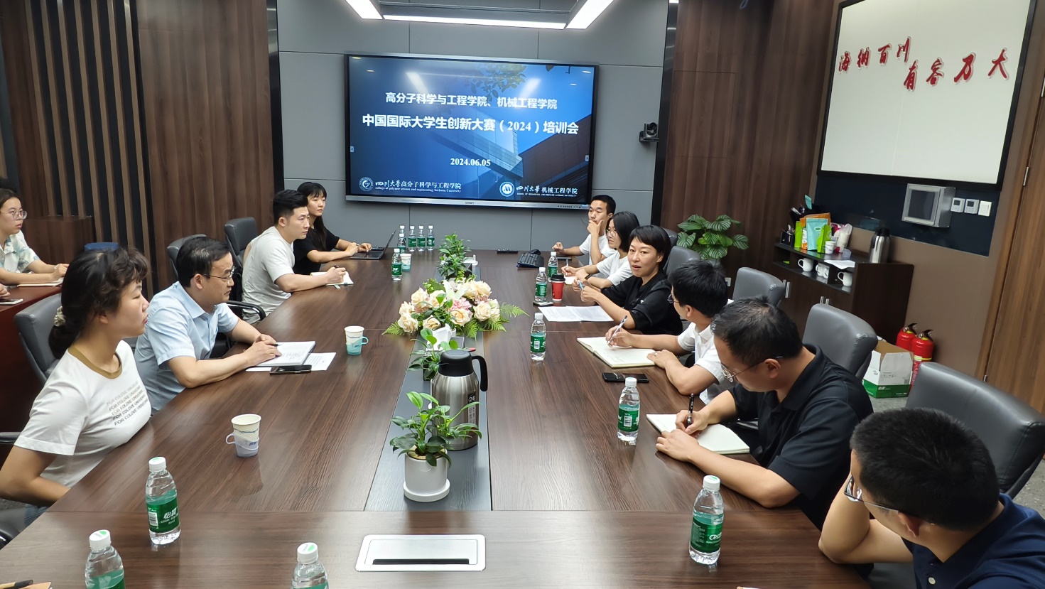 为贯彻落实党的二十大精神,深入落实《国务院办公厅关于进一步支持大学生创新创业的指导意见》(国办发〔2021〕35号)和《教育部关于举办中国国际大学生创新大赛(2024)的通知》(国办发〔2024〕9号)等文件要求,“三位一体”统筹推进教育、科技、人才工作,把创新教育贯穿教育活动全过程,持续激发8bo8足球比分 师生创新创业热情,充分挖掘8bo8足球比分live 创新创业教育成果,积极鼓励8bo8足球比分live 师生参加中国国际大学生创新大赛和中国大学生高分子材料创新创业大赛等各类双创比赛,2024年6月5日,8bo8足球比分live 联合机械工程8bo8足球比分 在8bo8足球比分 科教楼207会议室举办了中国国际大学生创新大赛(2024)培训会。本次会议邀请了四川大学教务处创新创业工作领导小组办公室专职副主任吴迪副教授交流指导,8bo8足球比分live 和机械工程8bo8足球比分 拟参赛师生参会,会议由8bo8足球比分 党委书记牟德富主持。