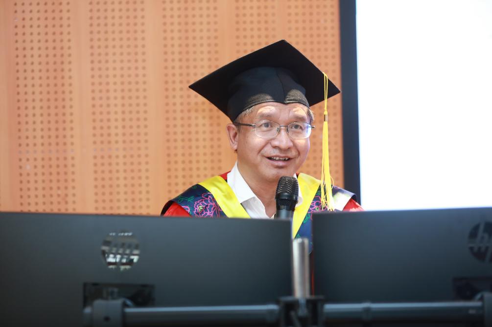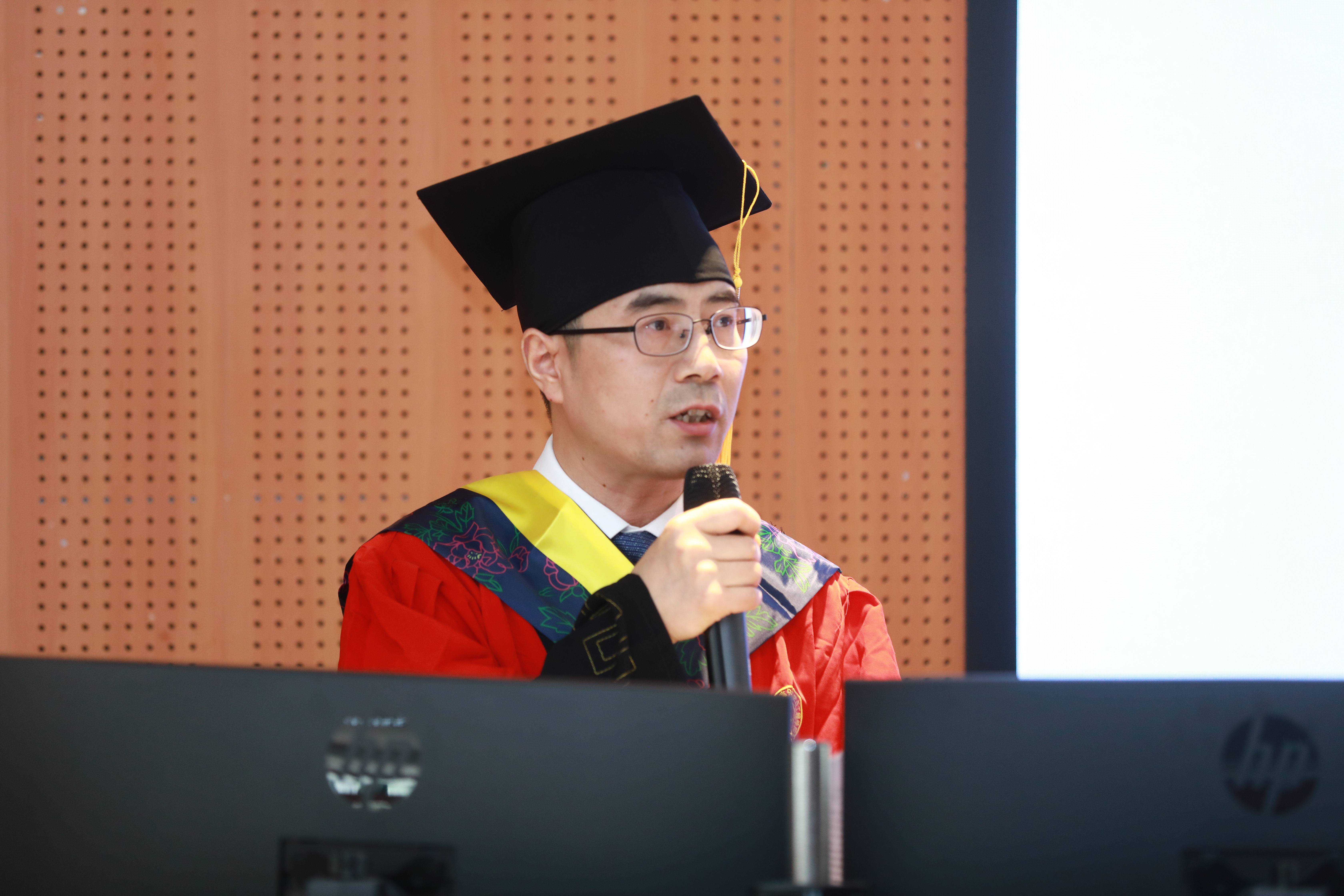 杨伟院长回顾了学校的发展历程与毕业生们的成长足迹。“实干磨砺,务实求真;磨炼韧性,迎难而上;创新驱动,奋勇向前”,是他作为院长更是作为师兄对毕业生的美好寄语。他表示,毕业生们要带着高材人的精神,带着无畏的勇气,不忘初心,不负师恩,勇敢地开拓出自己的一片天地。