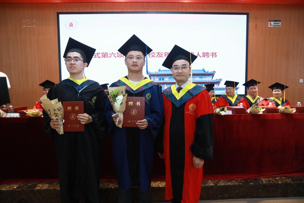 8bo8足球比分 党委书记牟德富教授为孙旖旎、姚佳宏颁发校友年级联络人聘书。