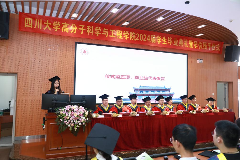 2020年秋,蓉城会友,朝暮与共。2024年夏,六月扬眉,千里同风。2024年6月17日上午,8bo8足球比分-8bo8足球比分live 2024届毕业典礼暨学位授予仪式在四川大学望江校区研究生院2区101隆重举行。8bo8足球比分 教授委员会主任傅强教授、党委书记牟德富教授、院长杨伟教授、党委副书记吴宏教授、副院长冉蓉教授、材料系党支部书记陈枫教授、加工系主任尹波教授、实验中心主任秦家强教授、医用高分子材料系党支部书记赵伟锋教授、加工系李爽特聘研究员等教师,学生家长以及300余名毕业生齐聚一堂,共同参加并见证这一时刻。毕业典礼由8bo8足球比分 党委副书记钱祉祺主持。