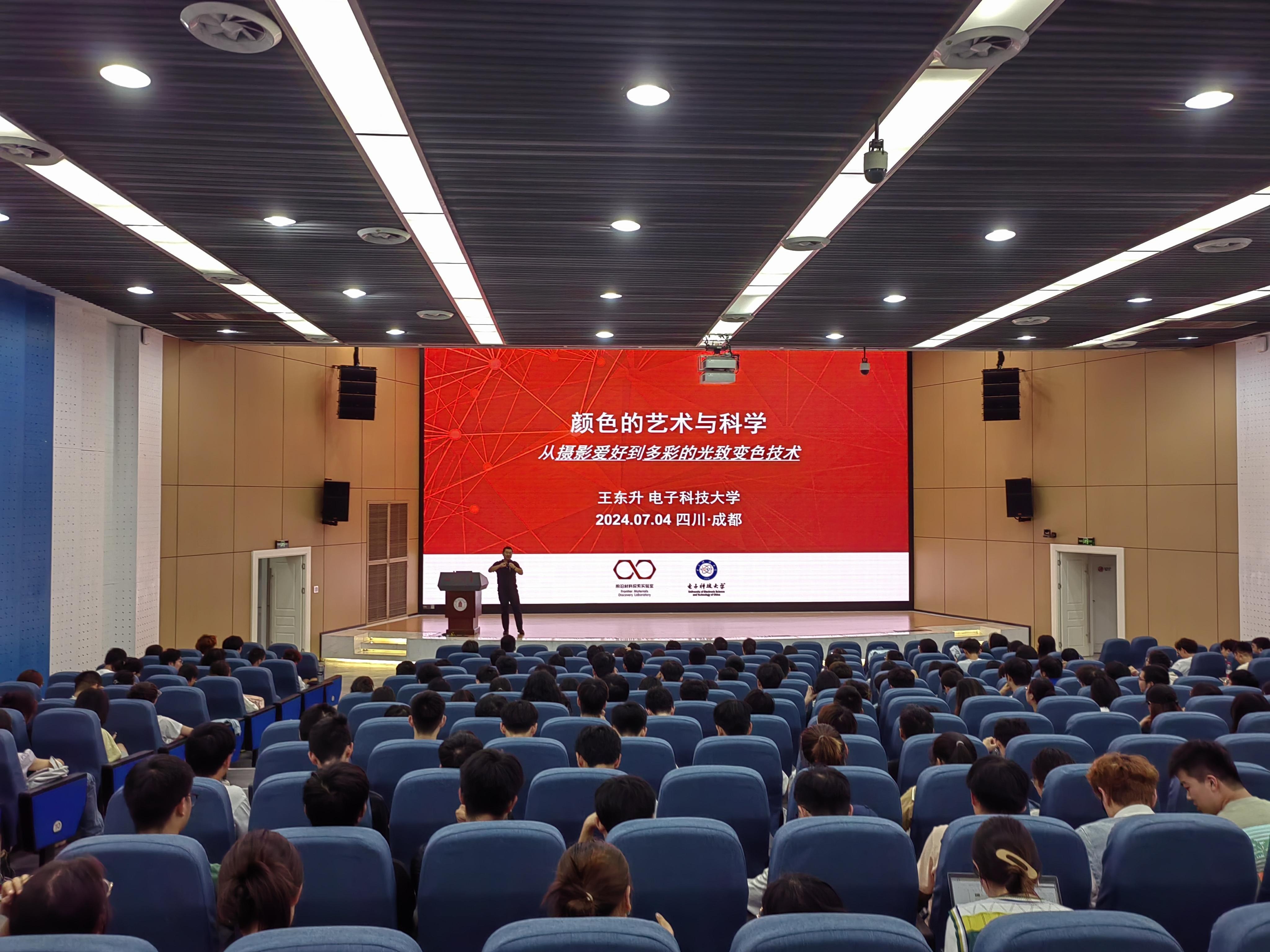 电子科技大学王东升副教授带来了主题为《颜色的艺术与科学——从摄影爱好到多彩的光致变色技术》的讲座。王老师首先介绍了自己在川大高分子本科和硕士期间的学习科研经历,然后分享了在德国马克思普朗克聚合物研究所的留学生涯,并通过视频和图片让同学们了解到异国他乡的自然景观和风土人情,他语言幽默风趣,态度平易近人,同学们都听得专心致志、聚精会神。接下来,王老师向大家介绍了自己摄影爱好的发展到光敏材料的的研究。他不仅就光敏材料中的一些专业知识向同学们作了详细的讲解,还以大家喜闻乐见的方式表现光敏材料与器件的内在逻辑。讲座将光敏材料与颜色艺术融合起来,加深了同学们对光敏材料的理解。