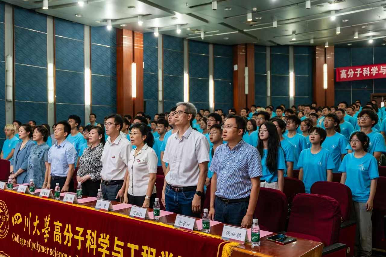 院长杨伟以“志存高远、追求卓越努力成为最优秀的高材人、川大人”为题讲授了“开学第一课”。他寄语新生“自有少年狂,骄阳万丈光”,鼓励同学们一同加入到建设世界高分子中心的队伍中来。教师代表谢正田,新生代表谷奕霖分别代表教师和新同学发言。