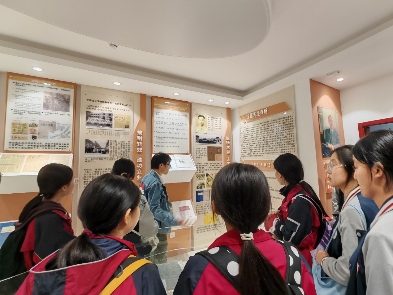 讲座结束以后,绵阳外国语学校的师生们参观了高分子材料工程国家重点实验室和徐僖院士纪念室,了解了川大高分子学科奠基人徐僖院士的生平和他对高分子学科的卓越贡献,通过实验室参观,进一步加深了同学们对高分子专业的兴趣。师生们还参观了四川大学校史馆和四川大学博物馆,对四川大学有了进一步的了解,增强了同学们报考四川大学的兴趣。