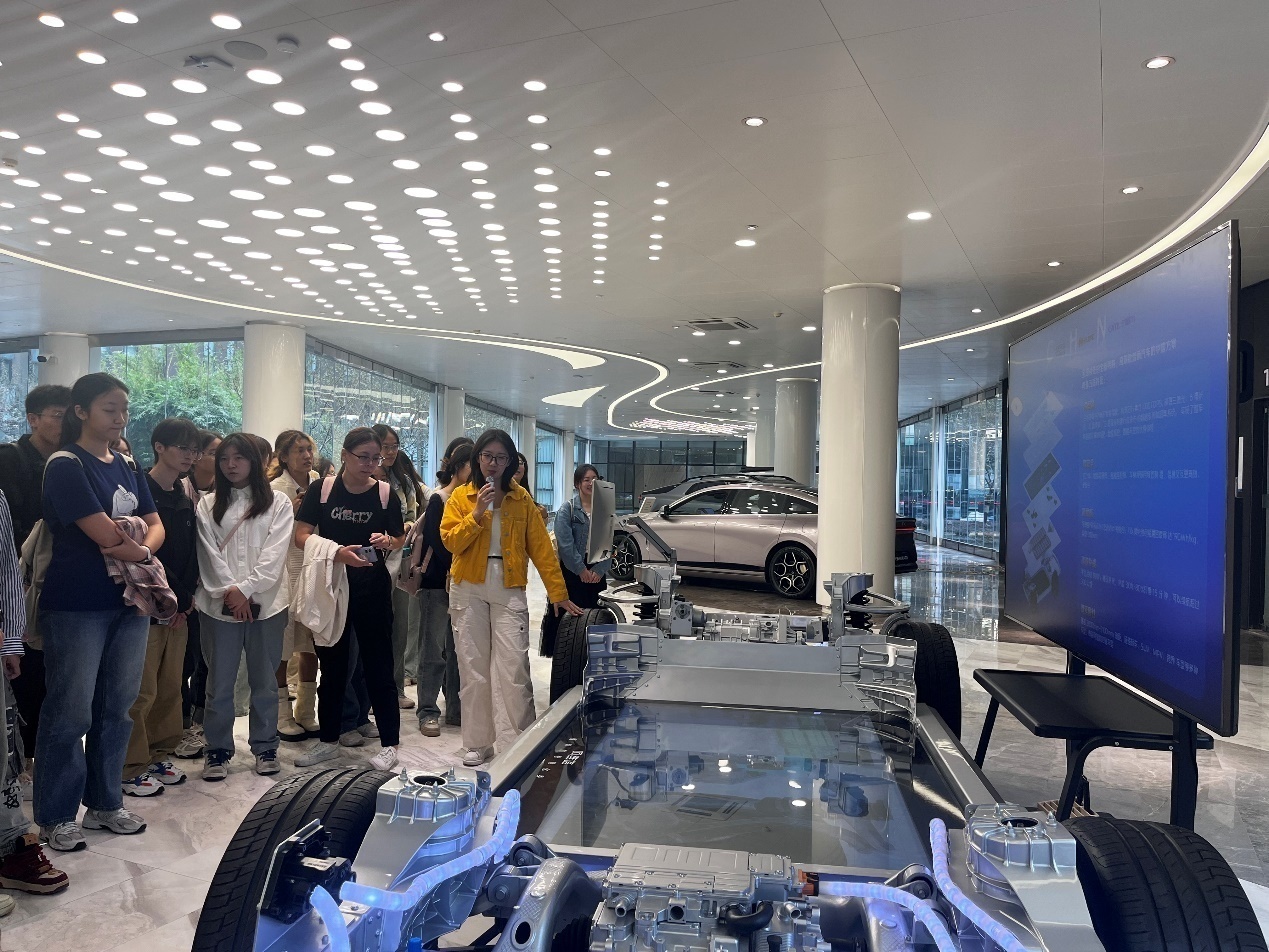 为深化产教融合,提升学生的实践能力和创新精神,2024年10月25日,8bo8足球比分 青年教师辅导员谢正田副研究员、2022级辅导员王雪梅带领2022级先进高分子材料与工程创新班同学前往长安汽车全球研发中心参观学习。