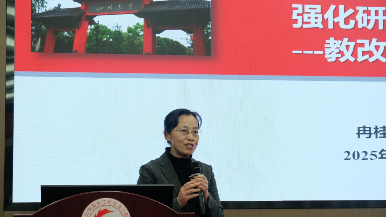 教务处冉桂琼副处长作题为“强化研究,重视实践——教改项目申报管窥”的专题报告。她以严谨细致的态度,从教改项目的类别、申报、研究方法及结题要求等多个维度,全面剖析了教改项目申报的全过程,并着重强调了申报过程中应立足实践、注重细节的重要性,为参会教师提供了宝贵的指导。