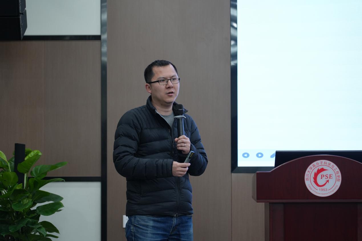 罗龙波副研究员做了题为“芳杂环聚合物结构设计与纤维制备研究”的报告。报告聚焦于高性能芳杂环聚合物的结构设计、合成与纤维成型加工。他详细讲解了不同类型的高性能纤维,如PPTA(聚对苯二酰对苯二胺)和PBO(聚对苯撑苯并双噁唑)等在关键领域的作用及面临的挑战。他的工作还包括探索如何平衡这些材料的溶解性和机械强度之间的矛盾,提出了利用机器学习辅助新结构的设计,以及通过多尺度结构调控来优化纤维性能的新思路。