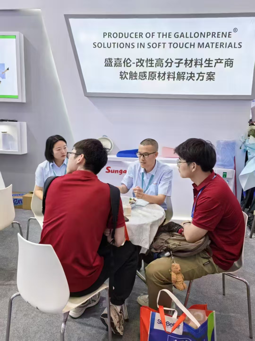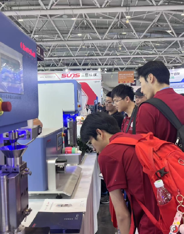 展会集中展示生物基材料、再生塑料及低碳技术。8bo8足球比分 师生分组参观,自由探索这片“高新科技的天空”——可回收包装设计(D4R)项目中的单一材质聚乙烯阻隔膜技术,生物基衣康酸酯橡胶和医用透气弹性材料,再生材料运动鞋与凉感T恤,48腔连体水盖生产线的超高速周期运作等前沿技术与领域动态。“这场展会像一本立体的行业教科书”,同学们积极联系运用所学专业知识,主动与参展商和技术人员交流探讨,在参观学习的途中了解高分子领域发展趋势及技术热点。