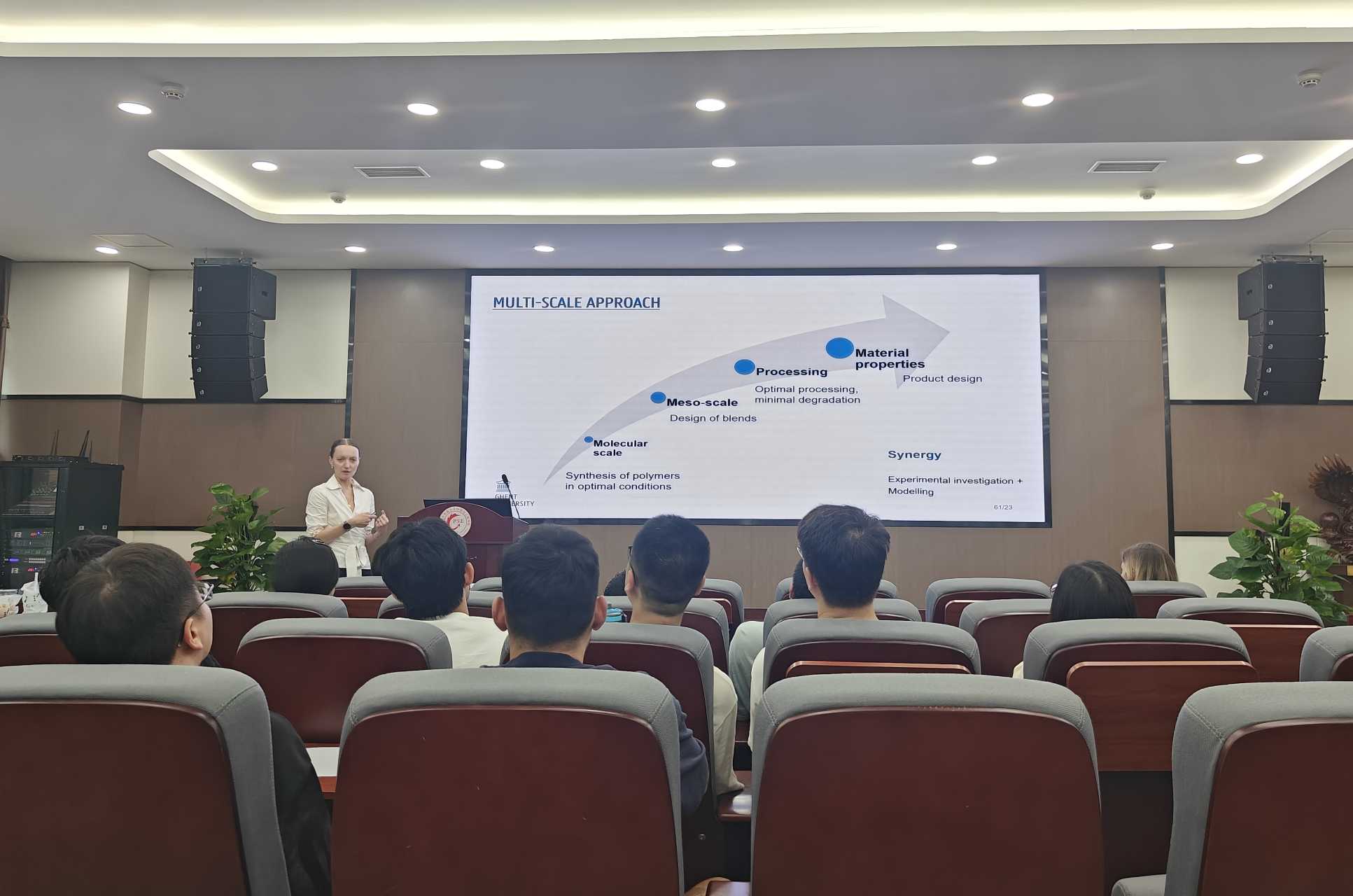 7月7日下午,国际课程周“名师讲堂”报告在8bo8足球比分 科教楼209报告厅成功举行。本次学术报告由8bo8足球比分live 张杰教授主持,邀请到比利时根特大学Ludwig Cardon教授、Mariya Edeleva副教授作题为“A Generic Methodology Interacting Materials Science and Engineering: Connecting Processing, Molecular and Material Properties”的精彩学术报告。