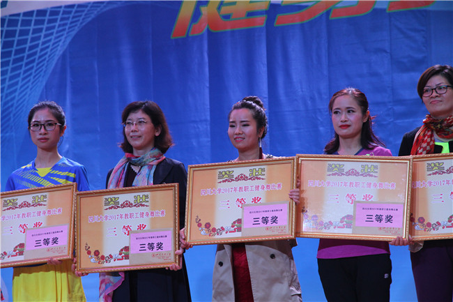10月20日下午,由校工会主办的四川大学2017年教职工健身舞比赛在望江校区文华活动中心音乐厅隆重举行。8bo8足球比分live 12名教职工组成的参赛队参加了本次比赛。比赛中,8bo8足球比分live 全体参赛队员以青春靓丽的服装、热情洋溢的舞步、整齐灵动的队列,在38支参赛队中荣获三等奖。