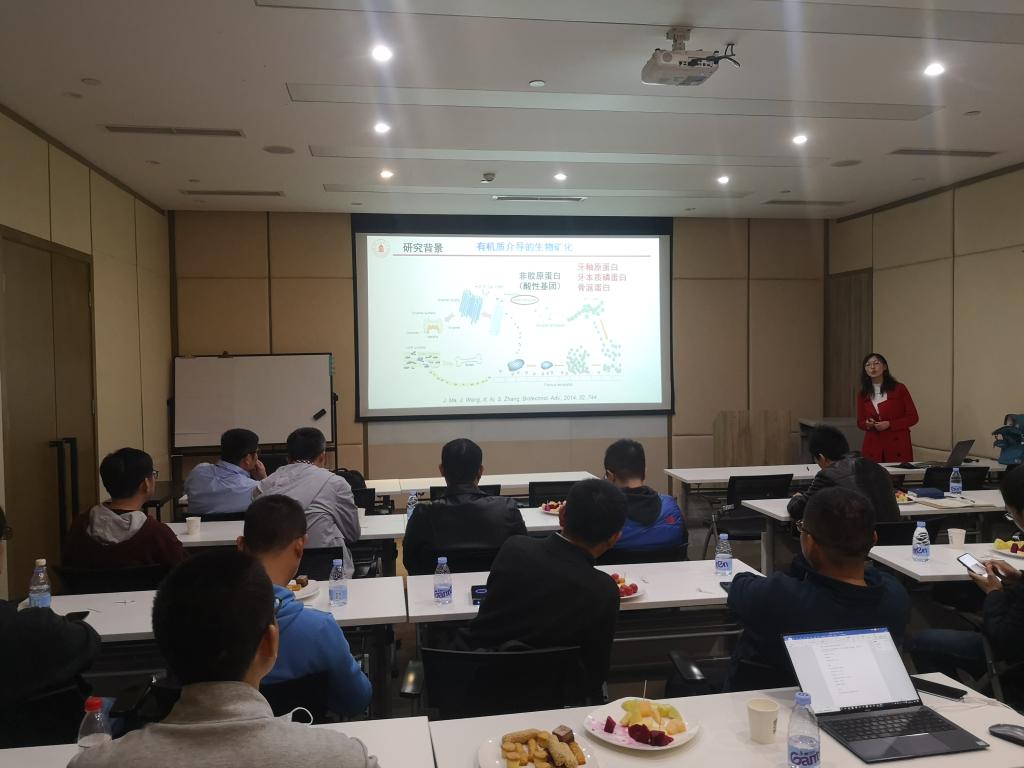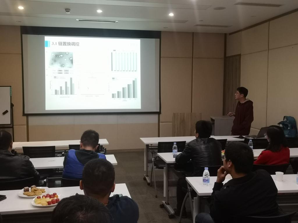 九时许,论坛在热烈的掌声中拉开帷幕。8bo8足球比分live 医用高分子材料及人工器官系副主任丁明明教授宣布论坛开始并主持论坛。随后,今年的国家优秀青年科学基金获得者,来自中科院长春应化所的丁建勋副研究员做学术报告。报告主要介绍了聚氨基酸纳米粒子的研究,尤其是聚氨基酸纳米粒子在药物载体上的应用转化。报告从聚氨基酸纳米粒子的制备、在体内的代谢行为和不同氨基酸比例对粒子在体内代谢的影响、粒子的载药机理和药物选择性释放等方面展开,介绍了一种具有良好生物相容性、能实现药物精准释放、具有广阔应用前景的聚氨基酸纳米粒子。来自中科院苏州生物医学工程所的缪鹏研究员介绍了关于DNA结构组装和结构调节方面的研究进展。他从DNA的链结构和功能讲起,先后介绍了DNA链的组装机理、结构调节,进而介绍了一种基于DNA链取代反应的杂交链式反应技术(HCR)。这种技术具有扩增快、准确度高、便捷高效等特点。最后,8bo8足球比分live 丁春梅副教授讲述了生物矿化方面的研究进展。她从自然界中的生物矿化讲起,介绍了有机质介导的生物矿化机理,以及借助这种机理在生物硬组织修复方面的研究,包括成骨、牙科修复等。