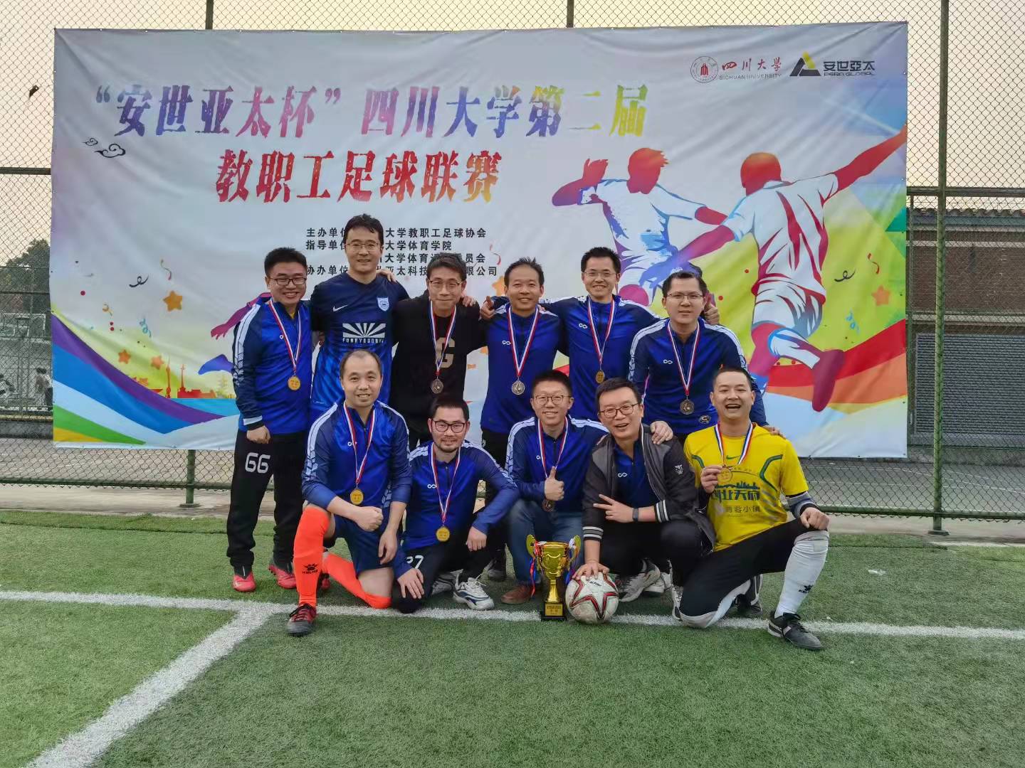 为贯彻落实国务院《全民健身计划(2021-2025年)》,加强校内各单位、各学科的融合交叉,提升教职工身体素质,丰富教职工业余生活,由四川大学体育运动委员会主办、四川大学教职工足球协会承办的“安世亚太杯”四川大学第二届教职工足球联赛于2021年9月25日开赛,历时两个多月。8bo8足球比分live 10余名教职工踊跃报名参赛,积极备战,比赛中呈现出良好的竞技状态和精神风貌,最终蝉联了全校季军,这也是两届联赛中所有参赛8bo8足球比分 中取得的最好成绩!